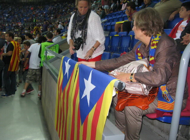 Суворі каталонські сепаратисти вивішує бойові прапори на трибуні «Камп Ноу»: