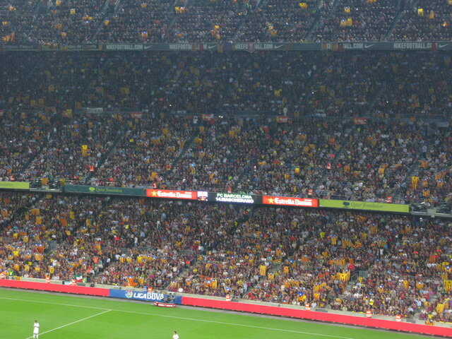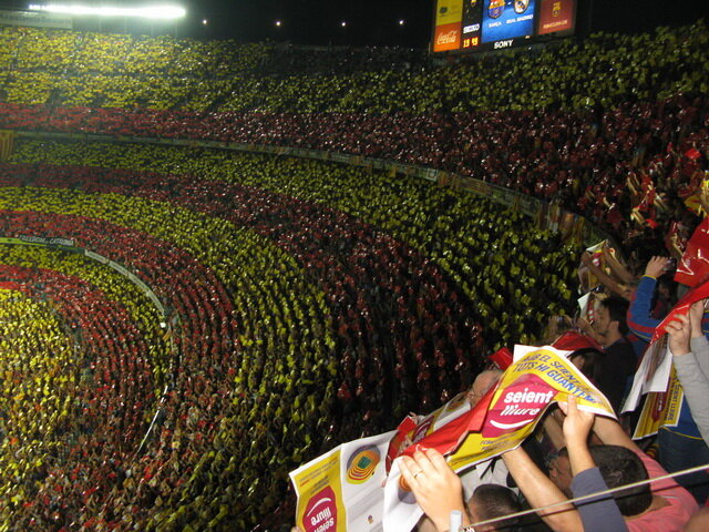Найбільша Прапор Каталонії розгортається на трибунах з 98 тисяч червоних і жовтих макетів з написом «Барса».