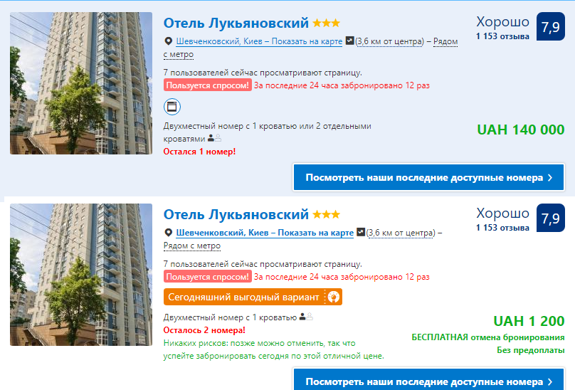 Ціни в готелі на Лук'янівці виросли більш ніж в сотню раз / скріншот